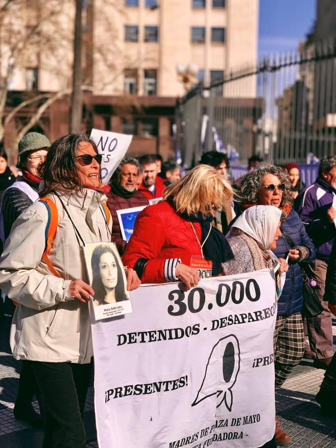 When the madres arrived and the march started, it was incredibly emotional. Many marched with pictures of their children, and they sang the names of those who had disappeared. Although they have been doing this every week since the 70s, you could still see fresh pain and emotion in their faces as they marched. To be able to witness this in person was heartbreaking and beautiful and really unforgettable.