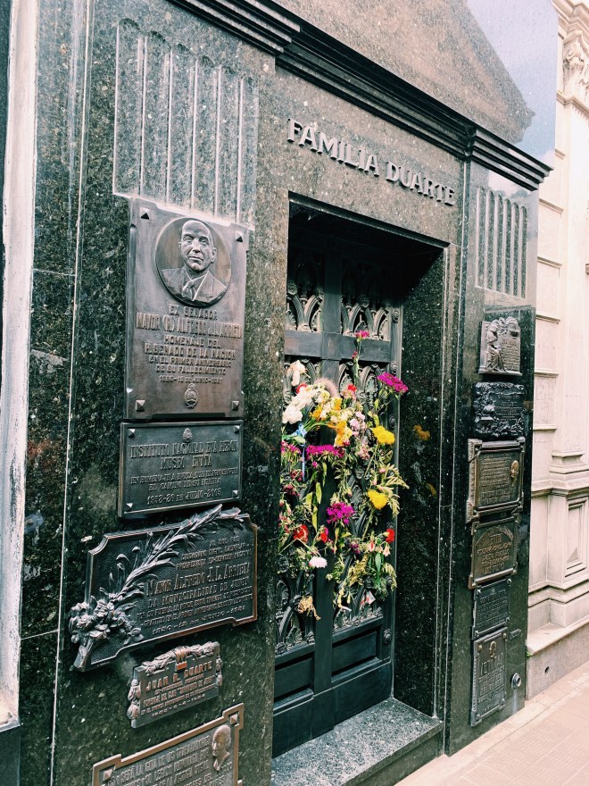 Tip: If you are looking for Evita’s grave, don’t look for a big grave that says Eva Perón, look for the black granite grave that says Familia Duarte. It will most likely be covered in flowers! There are no signs for it, so just follow the crowds of tourists.