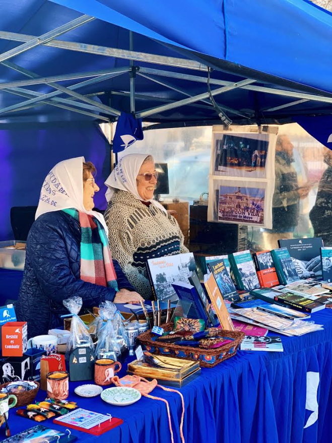 I arrived in the Plaza at around 3, half an hour before the march started. There were many signs of protest hanging around the plaza, and there was a booth where two of the madres were selling books about los desaparecidos.